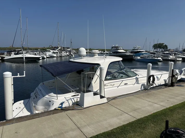 Quite possibly the cleanest one on the market, this 2001 Sea Ray 460 Sundancer shows exceptionally well. The 2001 Sea Ray 460 Sundancer is a well-appointed express cruiser known for its sleek lines, spacious layout, and solid performance. Powered by twin Cummins diesel engines, this 46-foot vessel offers smooth cruising and reliable handling. Its well-designed interior features two private staterooms, two heads, a full galley, and a comfortable salon—perfect for weekend getaways or extended cruising. Above deck, the large cockpit area provides ample seating, a wet bar, and a swim platform, ideal for entertaining or relaxing on the water. This model blends luxury, function, and performance in a timeless Sea Ray design.