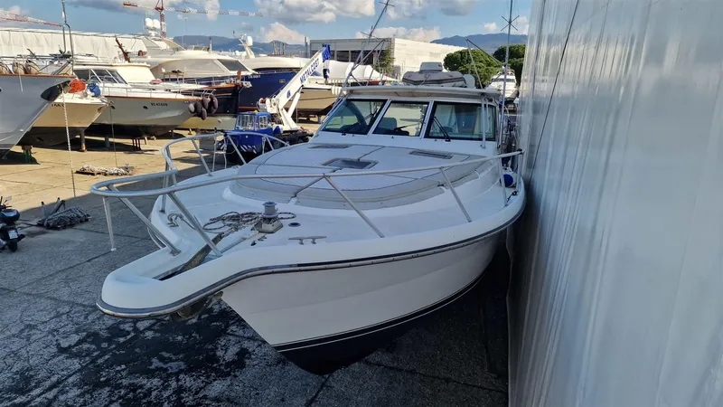 El exterior del Tiara 4200 Open presenta un perfil llamativo caracterizado por su silueta deportiva y una amplia zona de cabina. La gran cubierta abierta está diseñada para la pesca o el entretenimiento, con un amplio espacio para cañas, aparejos y aparejos. El puesto de mando está diseñado ergonómicamente, ofreciendo una excelente visibilidad y un fácil acceso a los controles, lo que facilita las maniobras en diversas condiciones. El barco está equipado con accesorios de acero inoxidable de alta calidad y materiales duraderos que mejoran su navegabilidad y atractivo estético.