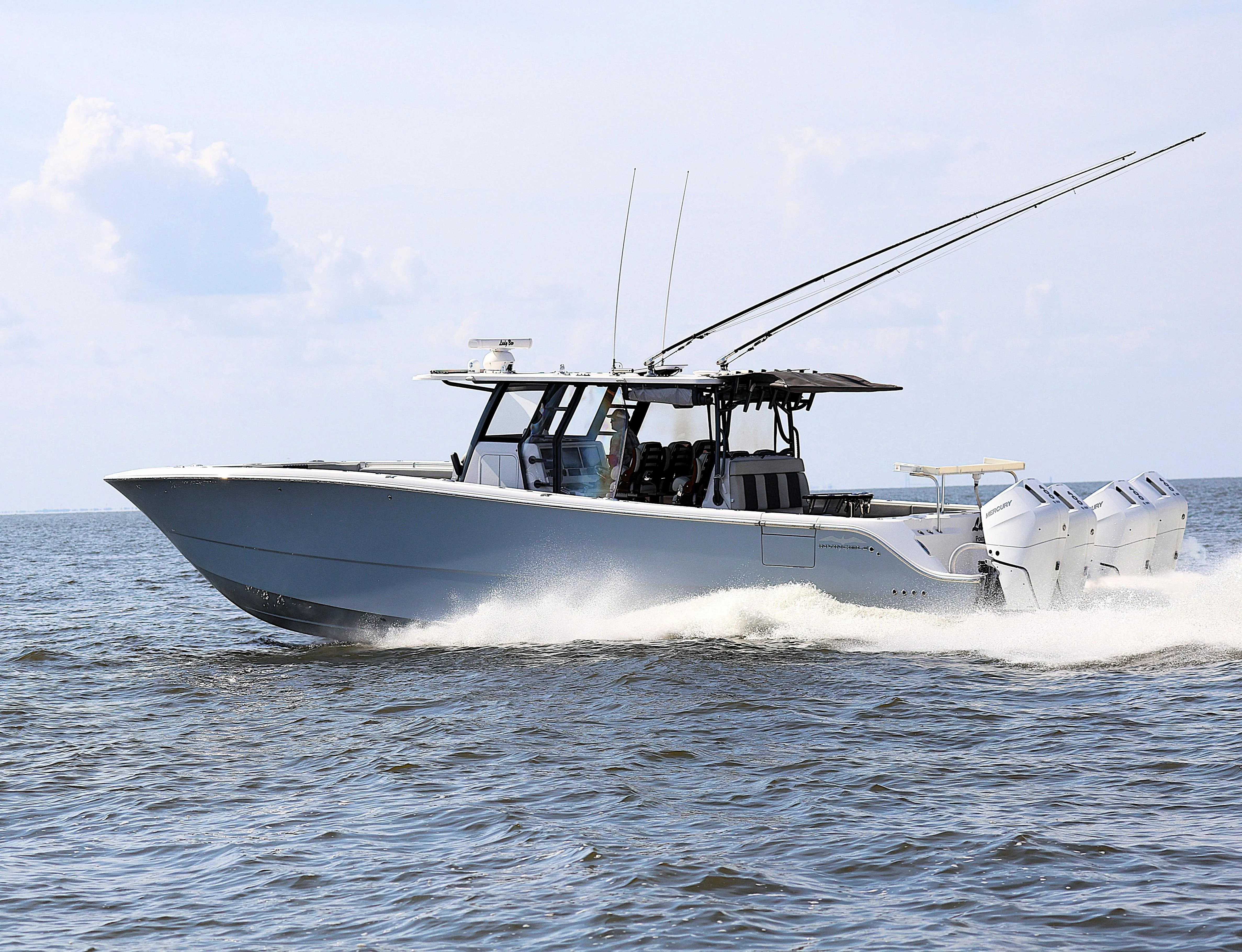 The ultimate offshore fishing machine, with unprecedented size, range and amenities to carry everyone and everything everywhere, in any conditions. A 46' Catamaran designed to efficiently achieve world beating performance out of quad-outboard engines, while providing sportfish-level fishability and specifications!