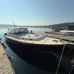 Discover the perfect balance of classic elegance and cutting edge performance. Her multi-purpose picnic boat attributes and extensive cabin space make her great for both day and long range cruising. Enjoy the peace of mind while cruising shallow intercoastal waterways and the benefits of joy stick technology at the dock.