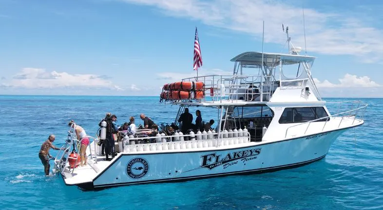 The open transom with water level entry and over 500 square feet of deck space makes diving and snorkeling operations easy and comfortable for customers and crew. Custom built EZ-fold aluminum ladders and handrails, your patrons will appreciate the ease of entering and exiting the water from the spacious dive platform. You'll appreciate the time savings at each dive site!