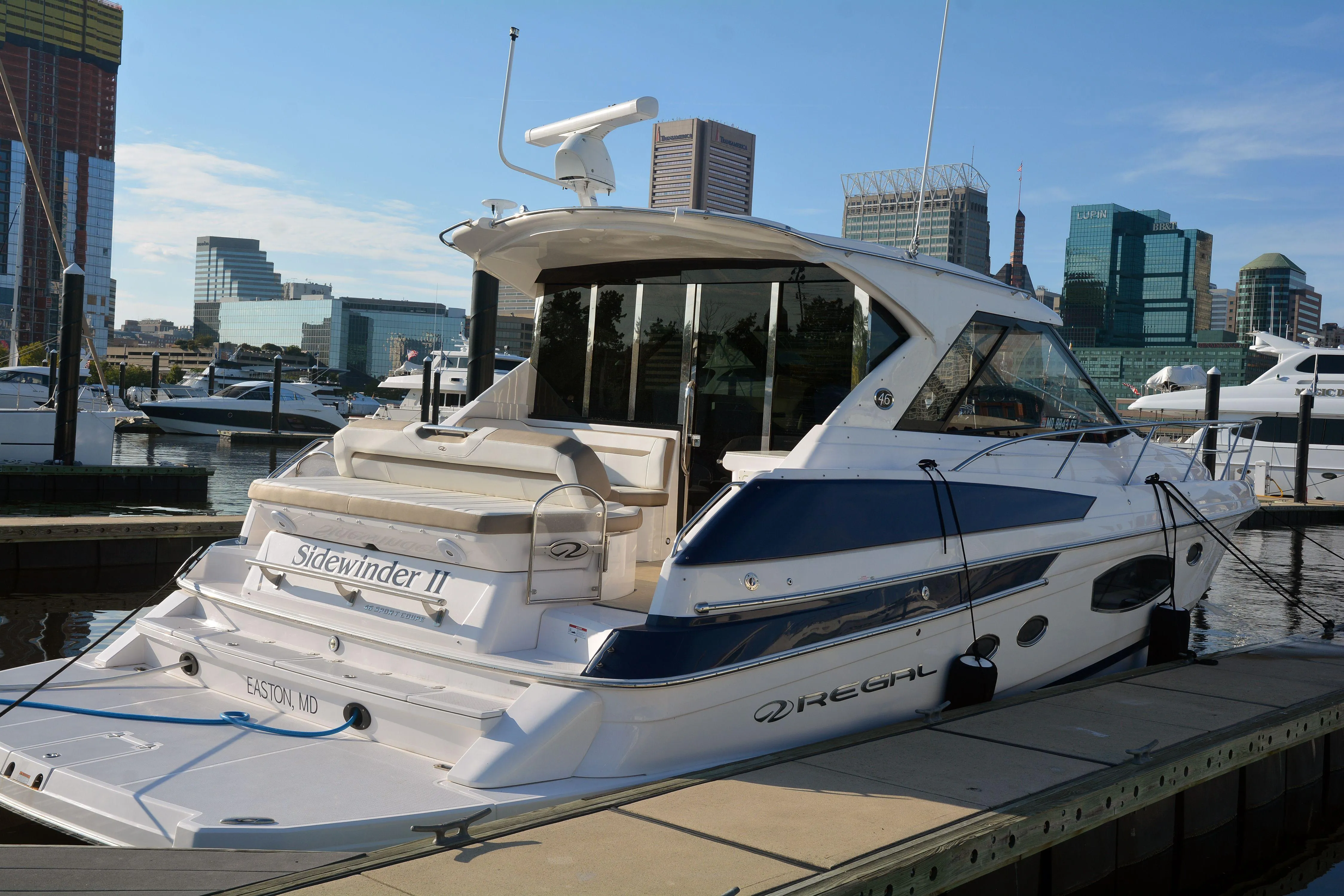 Introducing the 2018 Regal 46 Sport Coupe, a stunning motor yacht that combines elegance with performance. This used vessel boasts an impressive overall length of 46 feet, crafted from durable fiberglass with a modified Vee hull shape, ensuring stability and smooth navigation on the water. Powered by twin Volvo D6 IPS 500 inboard engines, each delivering 370 horsepower, this yacht offers an exhilarating experience with its efficient POD drive system. With only 440 hours of use, the engines are in excellent condition, ready for your next adventure. The Regal 46 Sport Coupe is designed for comfort and style, making it perfect for entertaining guests or enjoying a serene day on the water. Its thoughtful layout and modern features create an inviting atmosphere, while the powerful engines promise thrilling performance. Experience luxury and reliability with this exceptional motor yacht.