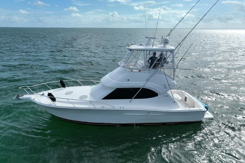 Introducing the stunning 2005 Riviera 40 Flybridge, a remarkable convertible boat that embodies elegance and performance. With an overall length of 40 feet, this vessel features a robust fiberglass hull designed in a modified Vee shape, ensuring a smooth and stable ride on the water. Powered by twin Cummins QSB 6.7 diesel engines, each delivering an impressive 450 horsepower, this boat offers a cruising speed of 21 mph and a maximum hull speed of 29 mph, making it perfect for exhilarating outings. The Riviera 40 Flybridge is equipped with an electric windlass, enhancing convenience during anchoring. Inside, it boasts a cozy cabin and a well-appointed head, providing comfort for your adventures. This used beauty combines functionality with style, making it an ideal choice for those seeking both leisure and performance on the water. Experience the joy of boating with this exceptional vessel.