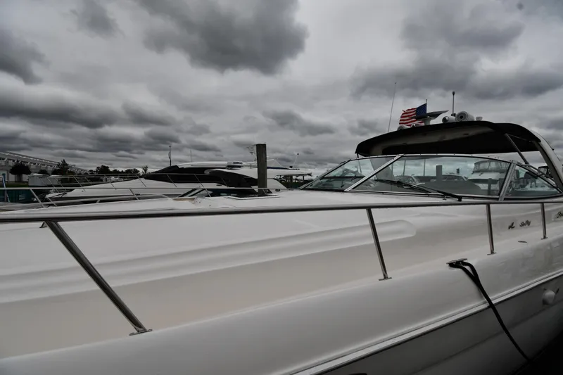 Freshwater / Great Lakes boat since new this vessel features Twin Caterpillar 3208 435-hp Diesel Engine's. Notable features include but are not limited to the following: Air-Conditioning & Heat (2-Units), (2) Heads (Vacuflush) w/Vanity/Sink/Stall-Shower, Cherry Cabinetry, Windlass Anchor w/Forward Pedal-Controls (Note Forward Freshwater Washdown), Hydraulic Swim-Platform, Canvas Package (Forward Convertible-Top w/Forward / Side-Windows / Aft Convertible-Top w/3-Piece Slant-Back Rear), Cockpit Wet Bar w/Sink, Westerbeke 8.0kw Generator, NEW 2025 Electronics Package (Garmin GPSMAP 1643 MFD w/GPS/Chartplotter, Garmin GPSMAP 943 XSV w/Autopilot Interface, Garmin VHF 115 Marine Radio, Starlink w/Seaview-Mount (Professional Install), Premium Fusion Sound System w/(2) Sub-Woofers/AMP/Wired Remote-Control (Note Bluetooth) - Extensive JL-Audio Speakers Throughout Cockpit / Swim-Platform - Note Interface NEMA2000 w/Garmin MFD, and MUCH more!