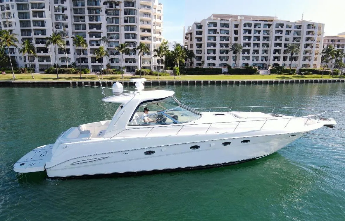 This Sea Ray 460 Sundancer is a great opportunity, a cruiser with everything you need to enjoy with family and friends. The spacious cockpit and wide-open bow area are great for entertaining. Down below is the salon with an open galley and seating area.
