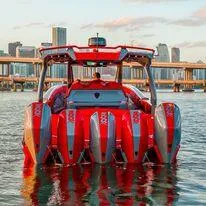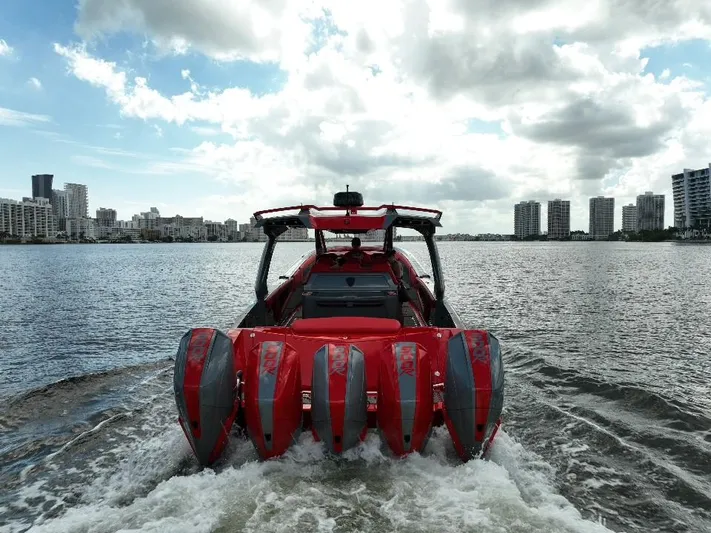 Base power for the 47 Reaper is quad Mercury Racing 450R outboard or buyers can upgrade to quint Mercury Racing 450R. The package delivers a mid-80-mph top-end speed,