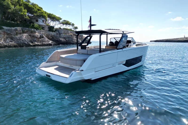 Powered by twin Volvo Penta IPS 650 pod drives, the A46 cruises comfortably at 24 knots and reaches a top speed of 34 knots, with joystick control for precise handling and easy maneuvering.