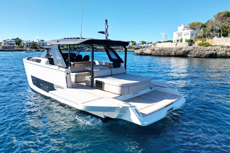 Below deck, the interior has been finished with the highest attention to detail. Two guest cabins and a fully equipped bathroom provide comfortable overnight accommodation, complemented by a galley and a convertible lounge. Premium materials and thoughtful lighting create a refined, modern atmosphere.