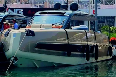 À première vue, le TT460 affirme sa singularité par des lignes tendues, puissantes, et une silhouette élégamment structurée. Le hard-top emblématique, soutenu par des montants design intégrés, affirme son style et protège les passagers avec justesse. Les surfaces vitrées latérales dans la coque allient modernité et fonctionnalité, inondant l’intérieur de lumière naturelle tout en offrant des vues spectaculaires sur l’environnement marin. Le TT460 ne cherche pas à ressembler à un autre yacht, il pose sa propre signature, forte, assumée et audacieuse.