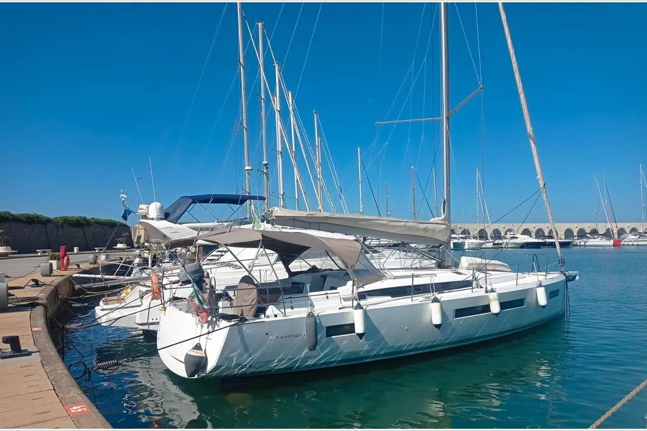In vendita un elegante Jeanneau Sun Odyssey 490 del 2018, uno dei modelli più apprezzati della gamma per il perfetto equilibrio tra design moderno, comfort a bordo e prestazioni di navigazione.