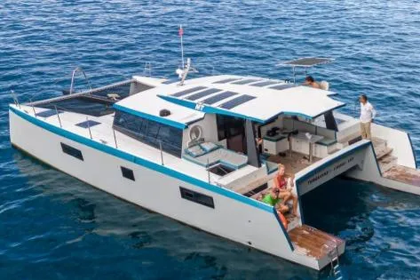 Introducing the Luna 47, a remarkable power catamaran that seamlessly blends modern design with exceptional performance. This 14.2-meter vessel, crafted from durable fiberglass, showcases a sleek and contemporary aesthetic that is sure to turn heads on the water. The Luna 47 is designed for versatility and comfort, making it an ideal choice for both leisurely cruising and adventurous excursions. Its spacious layout allows for ample room to relax and enjoy the journey, while the thoughtful features enhance the overall experience. Equipped with advanced technology, this catamaran is built for ease of handling, ensuring a smooth and enjoyable ride. The combination of its robust construction and innovative design makes the Luna 47 a standout choice for those seeking a reliable and stylish vessel. Experience the thrill of the open water with the Luna 47, where every journey becomes a memorable adventure.