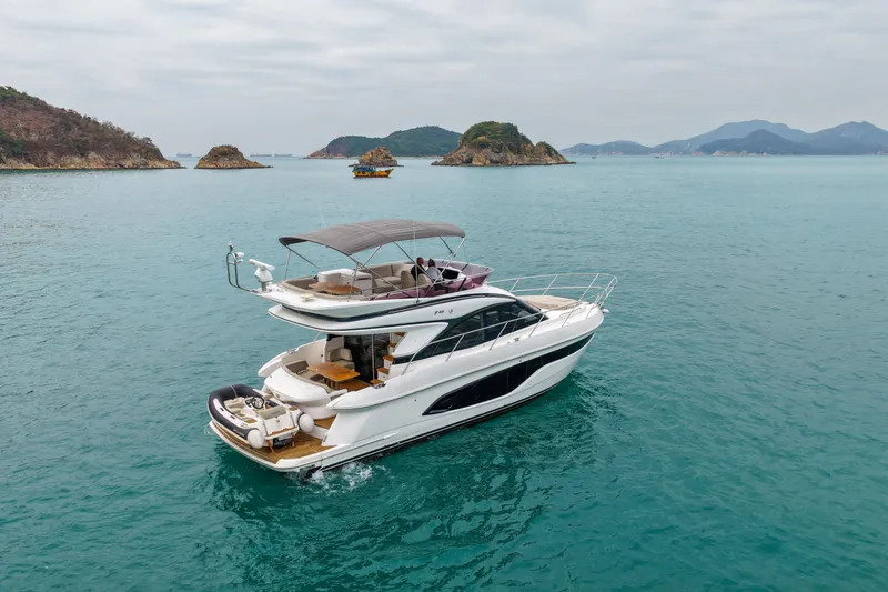Built in late 2019 (as a 2020 model year), this PRINCESS F45 is currently for sale in Hong Kong. This British-built flybridge yacht has only 395 engine hours and is asking USD 850,000.