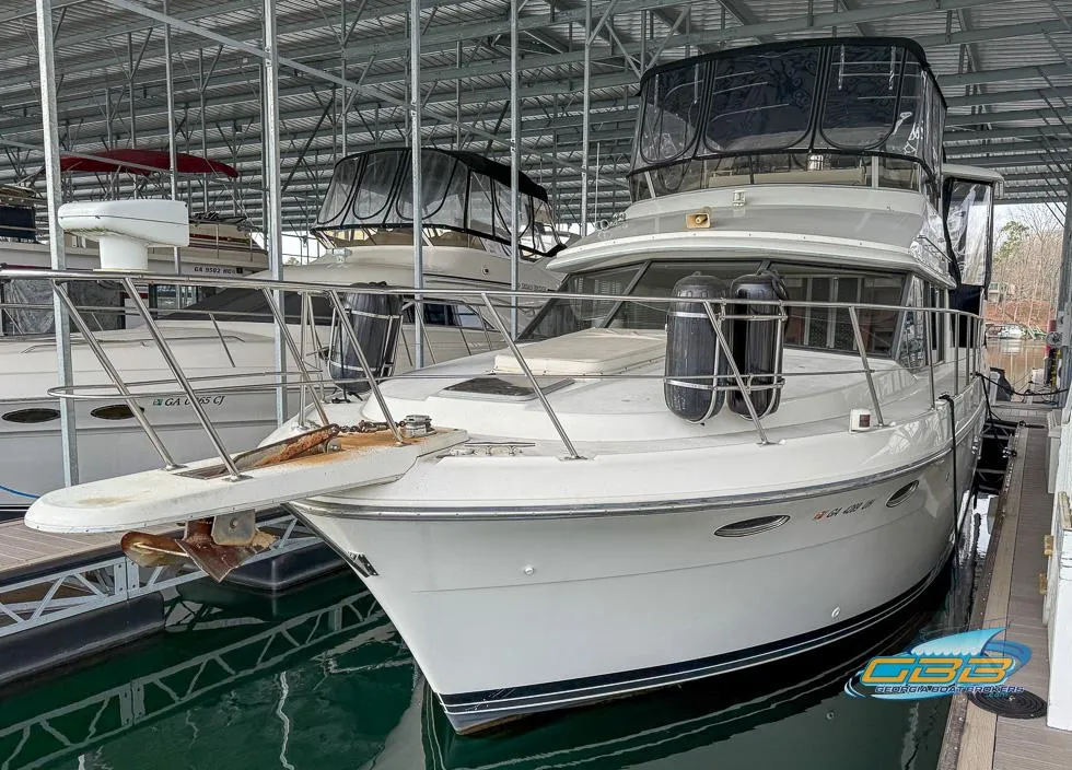 If you are looking for space, comfort, and functionality in a motor yacht around the one hundred thousand dollar range, the Carver 430 Cockpit Motor Yacht is an excellent choice. This freshwater-only vessel has spent its life on the Tennessee River and Lake Lanier, ensuring a clean hull and well-preserved systems, a true advantage over saltwater boats.