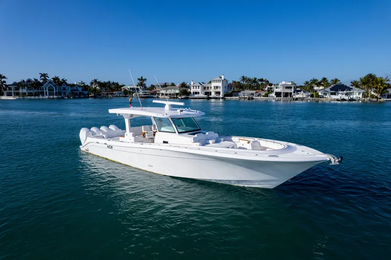 48 Campeón for sale, HCB 48 Campeón, luxury center console, mega center console yacht, Bolt control system, offshore fishing yacht, Miami Boat Show award winner, high-performance center console.