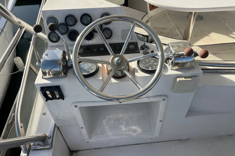 Aft Helm to port - Engine controls and gauges