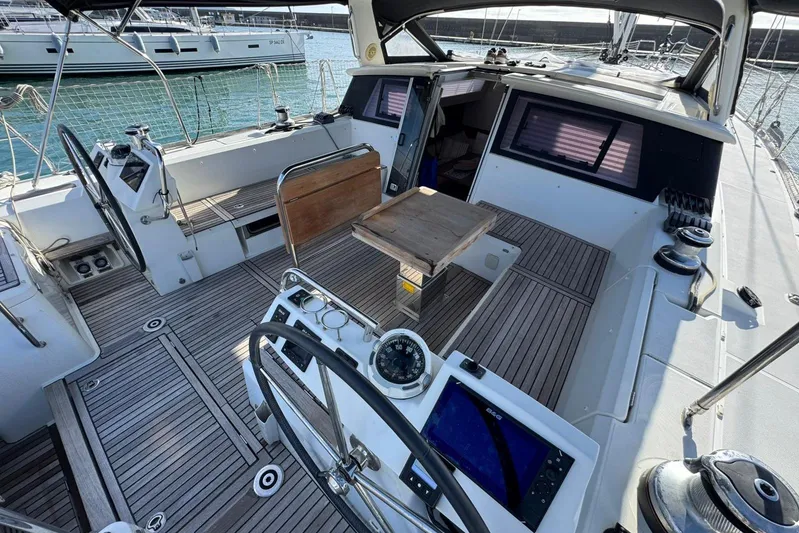 Questa barca ha avuto un unico proprietario, versione 3 cabine 2 bagni + cabina marinaio, accessoriata con tutti gli equipaggiamenti utili per la crociera compresi generatore, inverter, aria condizionata, elica di prua, winches elettrici, secondo serbatoio gasolio e secondo serbatoio acqua, randa avvolgibile, chiusura totale pozzetto