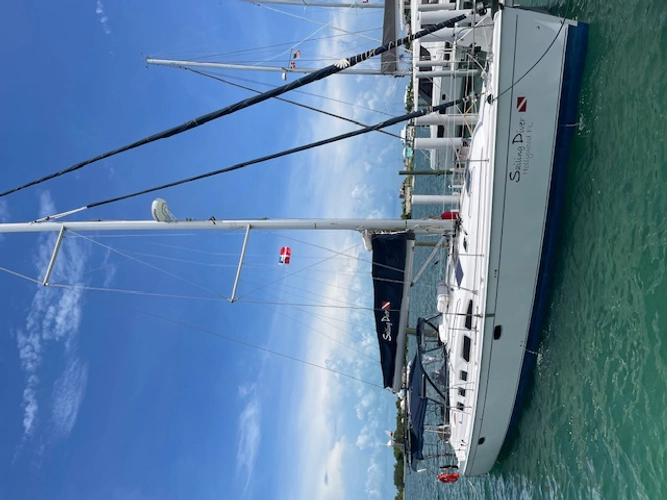 This boat was originally owned by avid SCUBA divers , who embarked on a multi-year diving cruise along the Atlantic East Coast, Bahamas, and Caribbean. She was outfitted with a dive compressor, integral tank racks, and a large dive platform to support this diving adventure. After some years the husband passed away and the wife continued to live aboard in St. Maarten, N.A. Boat was purchased by her current owner in June 2022 who sailed her from St. Maarten to Ft. Lauderdale where she is now.