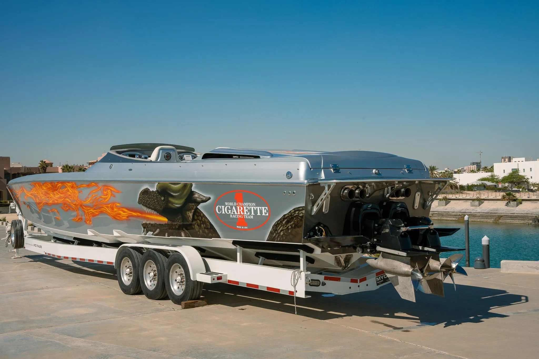 The Cigarette 50 Marauder is a sleek and powerful high-performance offshore powerboat that is designed for speed and style. With a length of 50 feet and a beam of 8 feet, 3 inches, the Marauder is a true powerhouse on the water.