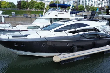 The 50-foot Marquis sport coupe yacht is both a luxurious and refined vessel, designed to combine performance and comfort. Its elegant exterior, featuring smooth lines and a sporty profile, gives it a modern appearance that catches the eye on the water.