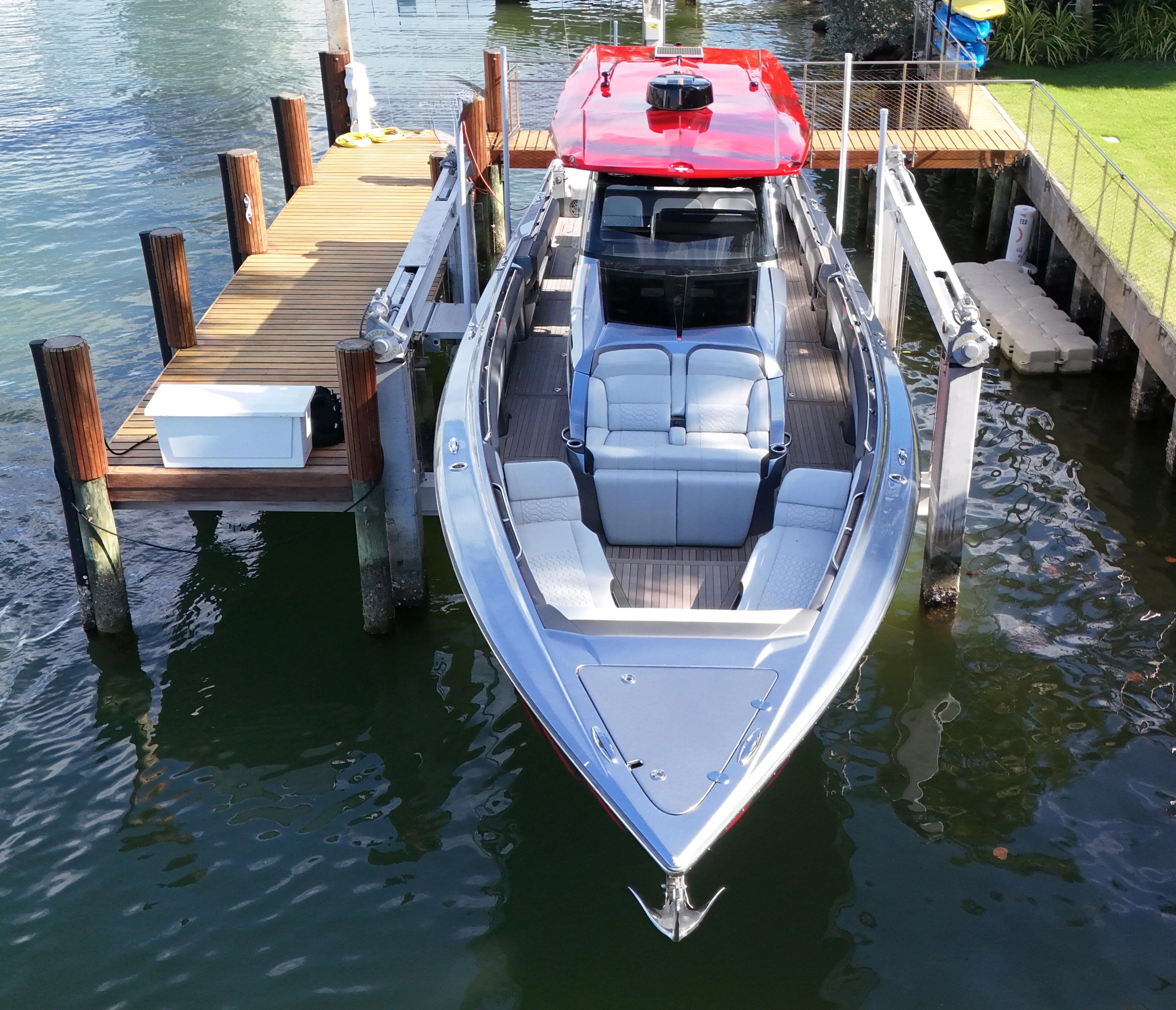 - Cold plate coolers in skipper's leaning post and second-row leaning-post seat