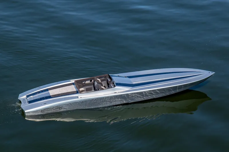 This is a 2020 Outerlimits SL50 powered by Mercury racing 1350HP coupled to M8 drives with only 133hrs. (140MPH +) The boat features an all Alcantara Interior, Power seat bottoms, Livorsi throttles with trim, Dual Garmin 12GPS, 703 Vessel View, Billet switches, Electric battery switches, Cockpit led lighting, Carbon Dashes, Bilge LED Lighting, Underwater lights, all exterior hardware blacked out, Fared and finished hull - deck seam, Bow thruster, Custom cockpit carpet, Sun pad, 1 - 2 cabin, cockpit cover, full travel cover, Custom paint, and sits on an Aluminum Myco trailer. Boat is located at the Outerlimits factory and was just fully serviced.