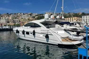 Sunpads, aft shade, stereo Fusion, generator Kohler 11 kW, Air condition system, aft teak (new), swimming ladder, hydraulic gangway, bar and sink, aft table, winch, fridges, TVs, hot water, oven, microwave oven, sink, fridge, bilge pump, fire extinguisher, life raft, cockpit shower.