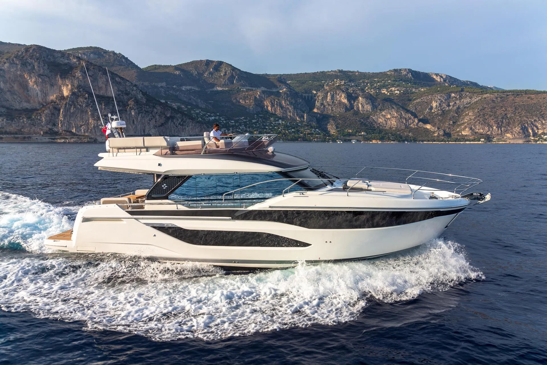 The Prestige Yachts F 4.9 offers the perfect combination of elegance, comfort, and performance. Designed for those who seek exceptional cruising experiences, this yacht features a spacious and modern interior with panoramic windows, high-quality finishes, and ample seating, creating a luxurious and inviting atmosphere. The well-appointed cabins provide ultimate comfort, each with en-suite bathrooms for privacy and convenience.