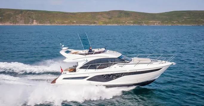 La nueva Princess F50, del prestigioso astillero Princess Yachts, combina un estilo superior con una practicidad excepcional dentro de la impresionante Clase F. Su diseño ha sido cuidadosamente concebido para crear un espacio inteligente y estéticamente atractivo, donde la vida a bordo se disfruta con mayor comodidad gracias a elementos geométricos que aportan un toque contemporáneo. Es una embarcación perfecta para familias e ideal para el ocio. El F50 establece un nuevo estándar de sofisticación, con acabados contemporáneos y detalles artesanales presentes en todo el yate. A bordo, los huéspedes se acomodan en tres cabinas elegantemente decoradas, dos de las cuales disponen de baño. El camarote principal, que ocupa toda la manga, invita al descanso con una cama doble, un sofá y una práctica zona de vestidor. El espacioso camarote de proa cuenta con baño y una gran cama doble, con la posibilidad de configurarla en forma de tijera para ofrecer mayor flexibilidad a los invitados. En el puente superior, destaca una amplia zona de asientos en forma de U en la popa, asientos en forma de L a babor que pueden convertirse en una tumbona y asientos dobles en el timón. La tecnología más reciente también está presente a bordo, con sistemas estabilizadores de girocompás y el sistema Volvo Penta Easy Boating como opción, los cuales complementan el avanzado casco fabricado por infusión de resina y los dos potentes motores Volvo D8-IPS 800 (2 x 600 mhp), capaces de alcanzar velocidades de hasta 34 nudos.