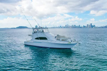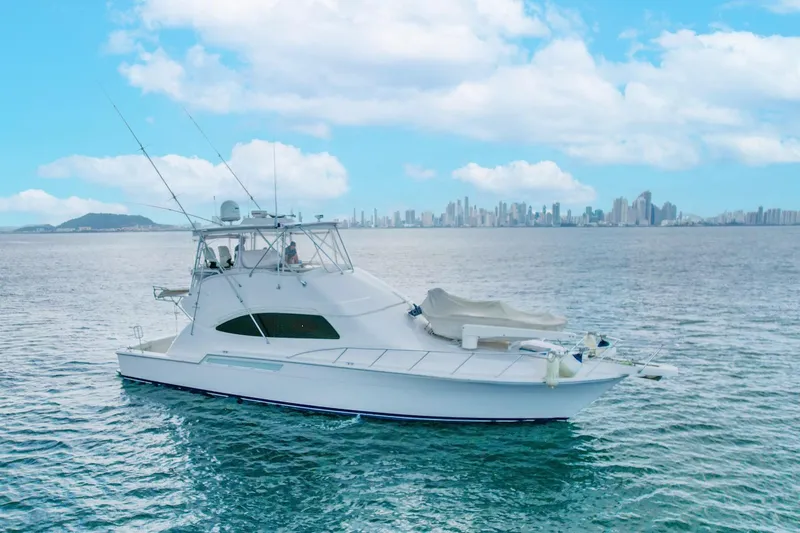 Designed for both sportfishing and cruising, she features a spacious cockpit, enclosed flybridge, and a warm, well-appointed interior with three guest cabins and crew accommodations. Solid, timeless, and purpose-built, this Bertram 51 is a proven platform for owners who value seaworthiness and classic American craftsmanship.