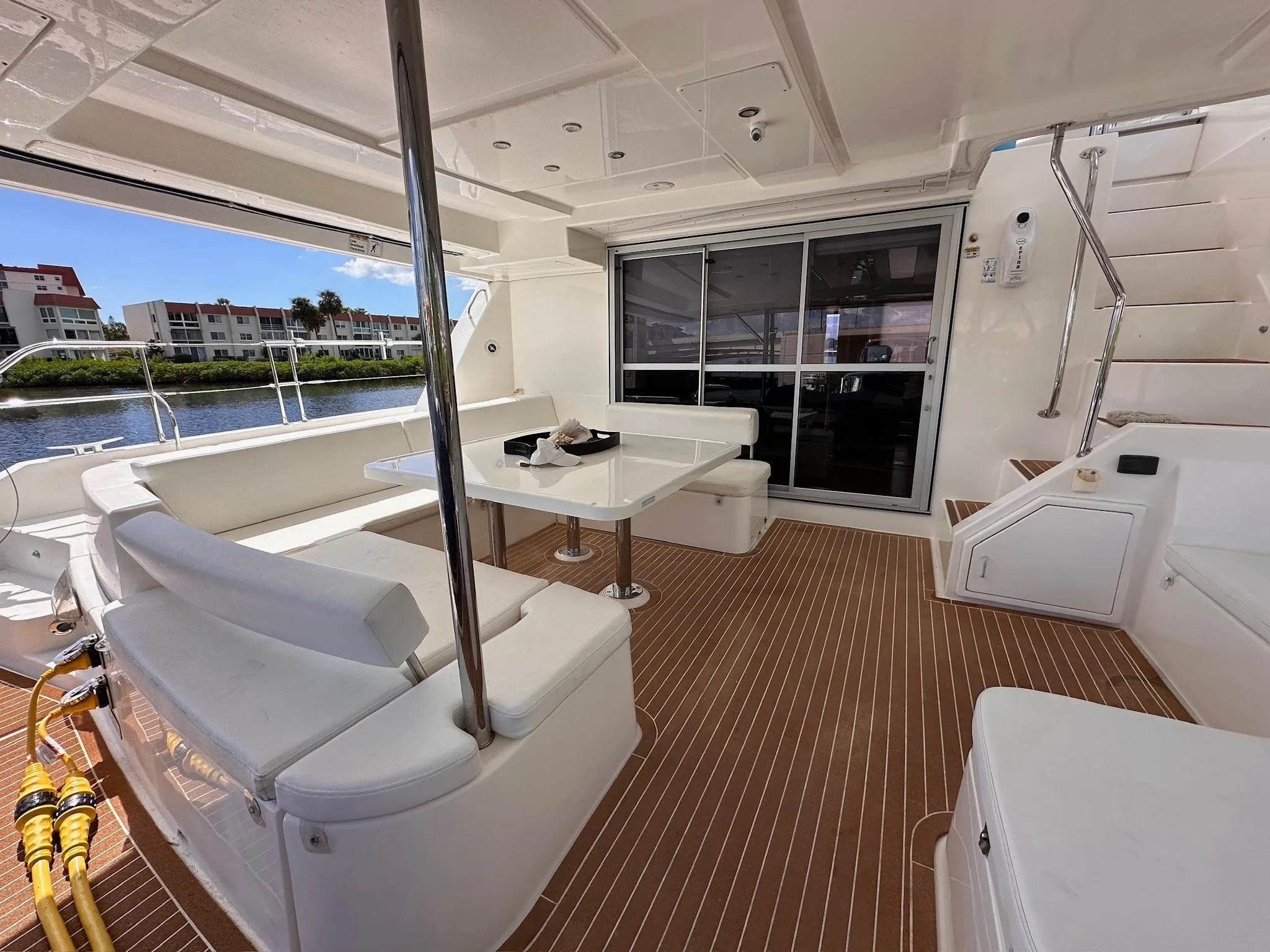 The Leopard 51PC is designed to be easily handled by a couple. Docking and maneuvering is simple and low stress due to her wide beam and responsive throttle controls. Safety is paramount. This 2016 Leopard 51PC has FLIR, EPirb, Sat Phone, fire extinguishers, multiple life vests and a large life raft. All bilge pumps and safety alarms have been upgraded along with a personal alarm system for onboard safety.