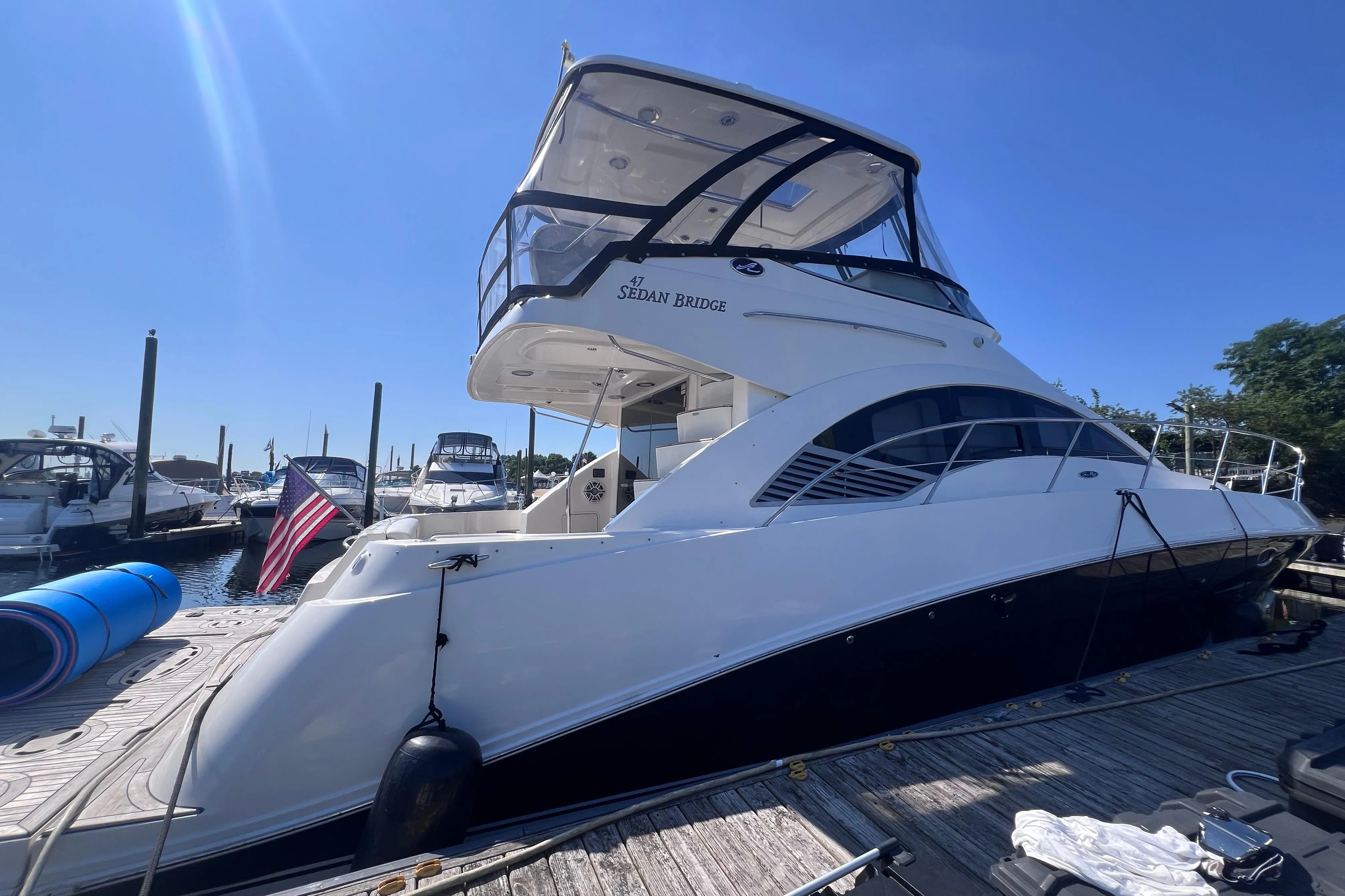 Introducing the stunning 2008 Sea Ray 47 Sedan Bridge, a remarkable motor yacht that combines elegance with performance. With an overall length of 47 feet, this vessel boasts a semi-displacement fiberglass hull, ensuring stability and a smooth ride on the water. Powered by twin Cummins QSC-600 diesel engines, each delivering an impressive 574 horsepower, this yacht promises exhilarating cruising experiences. Designed for comfort and functionality, the Sea Ray 47 features two heads, enhancing convenience for guests. The thoughtful layout allows for seamless movement throughout the yacht, making it perfect for entertaining or relaxing. This used model has been well-maintained, showcasing the quality craftsmanship that Sea Ray is known for. Whether you're planning a day on the water or an extended getaway, the Sea Ray 47 Sedan Bridge is ready to elevate your boating adventures with style and performance.