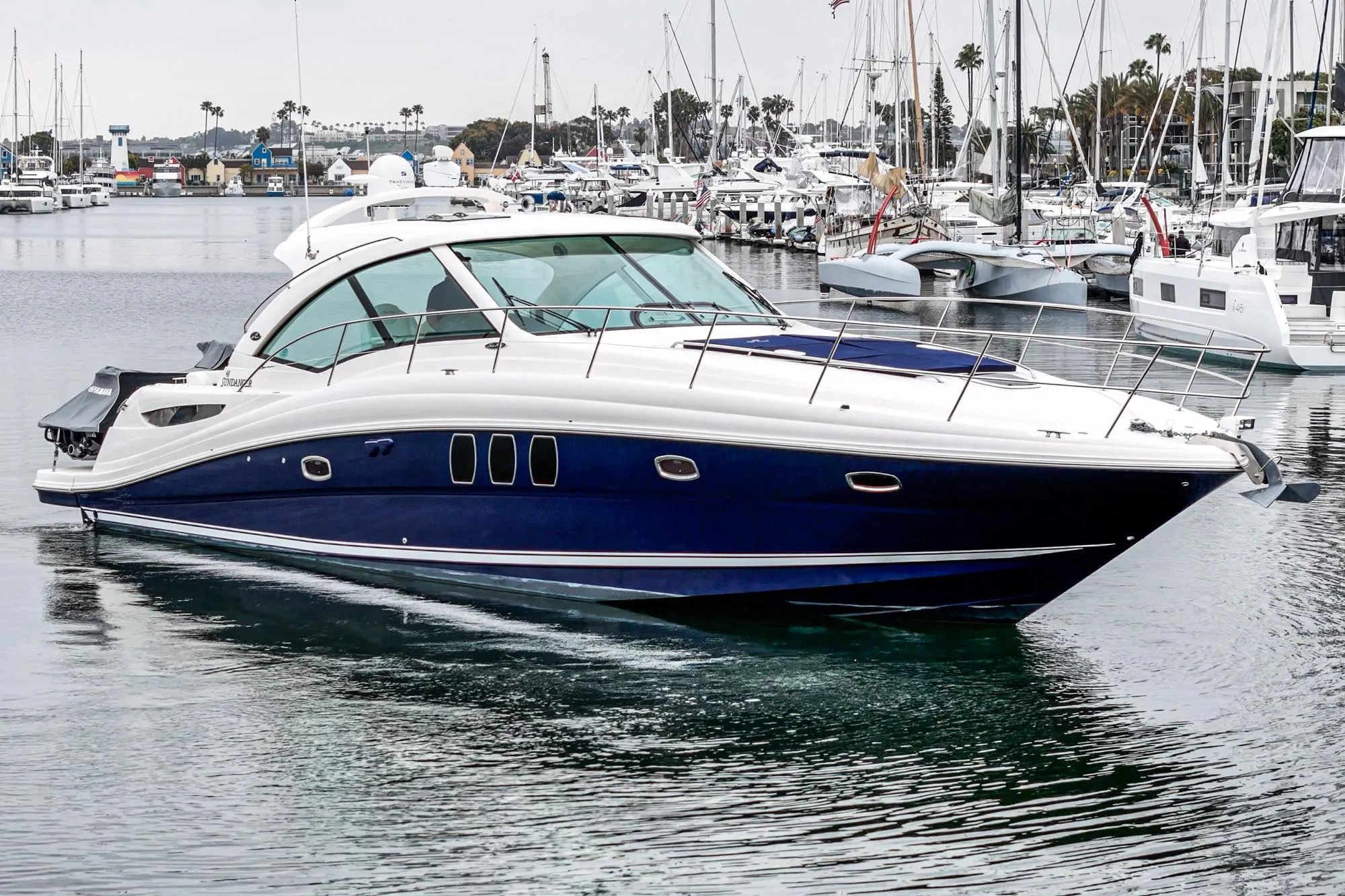 The Sea Ray Sundancer is synonymous with comfort through volume, style and affordability. This stunning navy-blue hull, low hour 48ft yacht is now available and ready to enjoy for this season. She cruises at 32 knots with her twin turbo diesel engine package, which is complimented by her three-stateroom layout and incredible entertaining platform. The seller has meticulously maintained her since acquisition through a reputable licensed Captain and management team! This iconic LLC owned Sea Ray 48 is one of the best opportunities on the market in California.