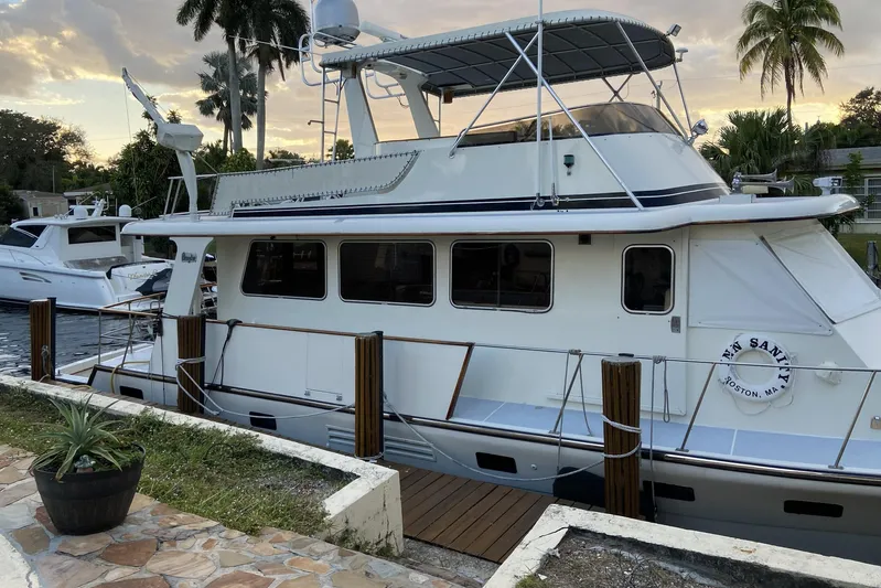 Introducing the Cheoy Lee 51 Long Range Cockpit Motor Yacht, a remarkable vessel from 1988 that combines elegance with performance. This motor yacht boasts an overall length of 51.75 feet, crafted from durable fiberglass with a displacement hull shape, ensuring stability and comfort on the water. Powered by twin Caterpillar 3208 diesel engines, each delivering 375 horsepower, this yacht offers a cruising speed of 8 knots and a maximum hull speed of 14 knots, making it ideal for both leisurely outings and longer voyages. With an impressive range of 2000 miles, you can explore distant shores with confidence. Accommodation is generous, featuring three cabins and two heads, providing ample space for relaxation. The yacht is equipped with an electric windlass, enhancing convenience during anchoring. Experience the perfect blend of comfort and functionality with this exceptional motor yacht, designed for unforgettable adventures on the open sea.