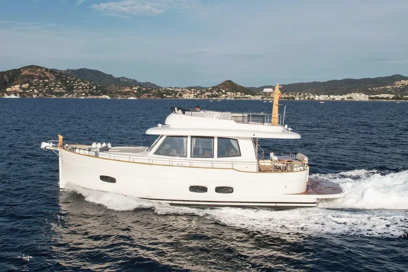 Available for delivery in May 2026, this is a unique opportunity to own a nearly new Menorquin 48 FB without the usual waiting time for a new build.
