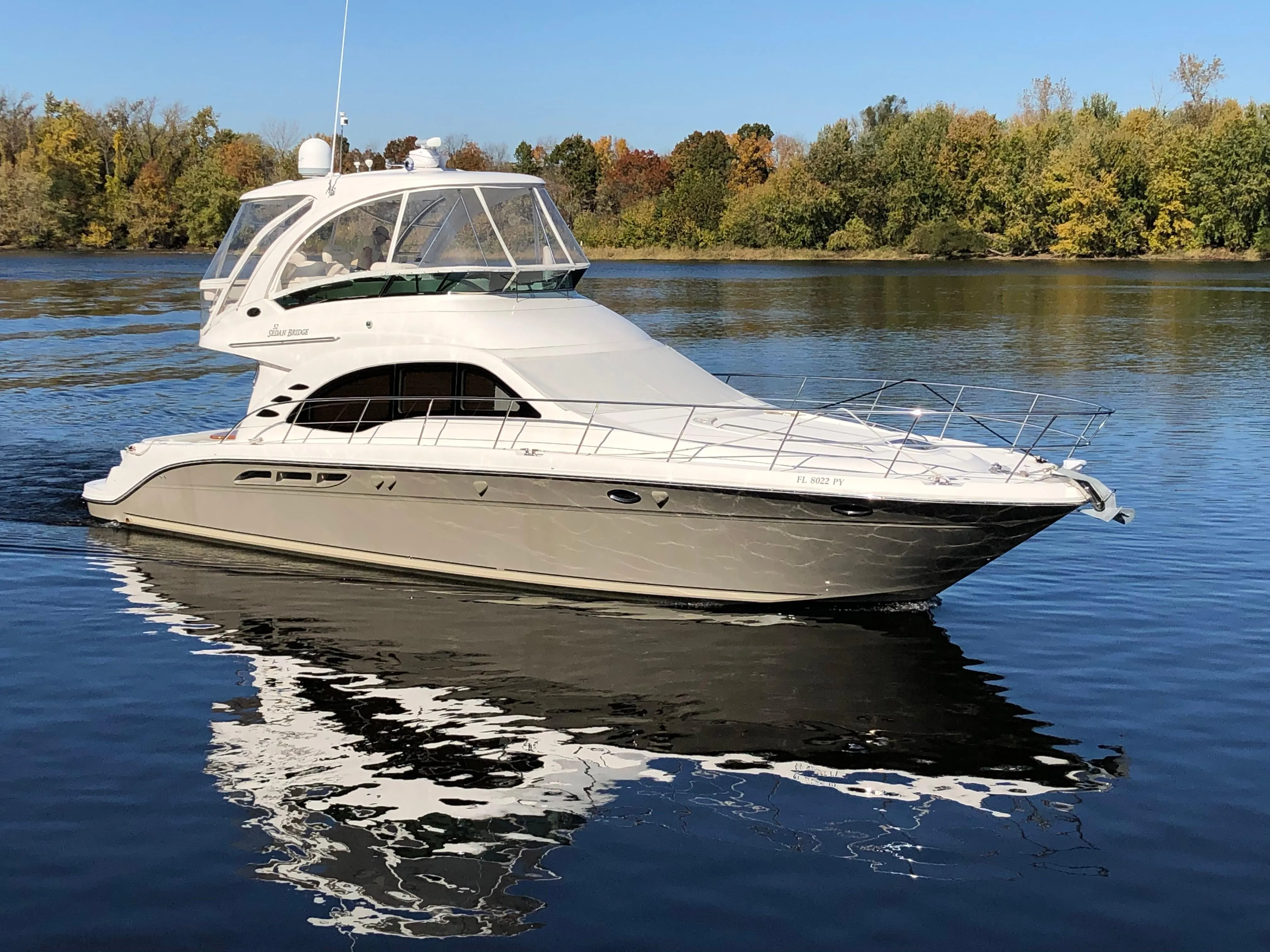 Loaded with most options. Professionally maintained and clean. Updated Raymarine electronics, bow and stern thrusters, recent canvas bridge enclosure, and low hours on Man diesels. Freshly detailed.