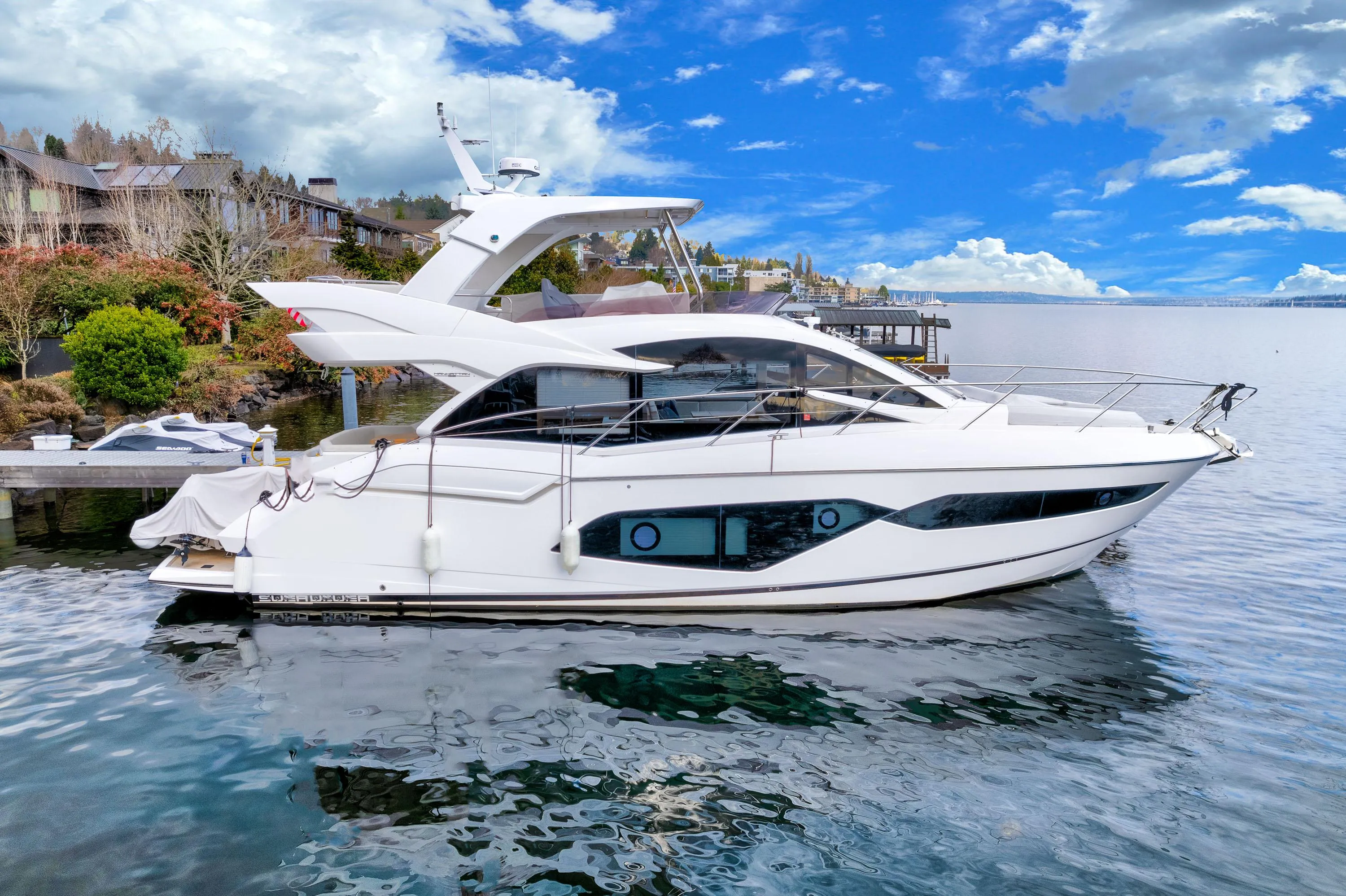 The Sunseeker 52 Manhattan is freshwater kept. Her innovative design maximizes her entertaining and living spaces. The Sunseeker 52 Manhattan large curved window glass shows her sleek looks and allows abundance of natural light. She has the Beach Club version. The Sunseeker 52 Manhattan has been maintained by an Authorized Volvo Penta dealer since new.