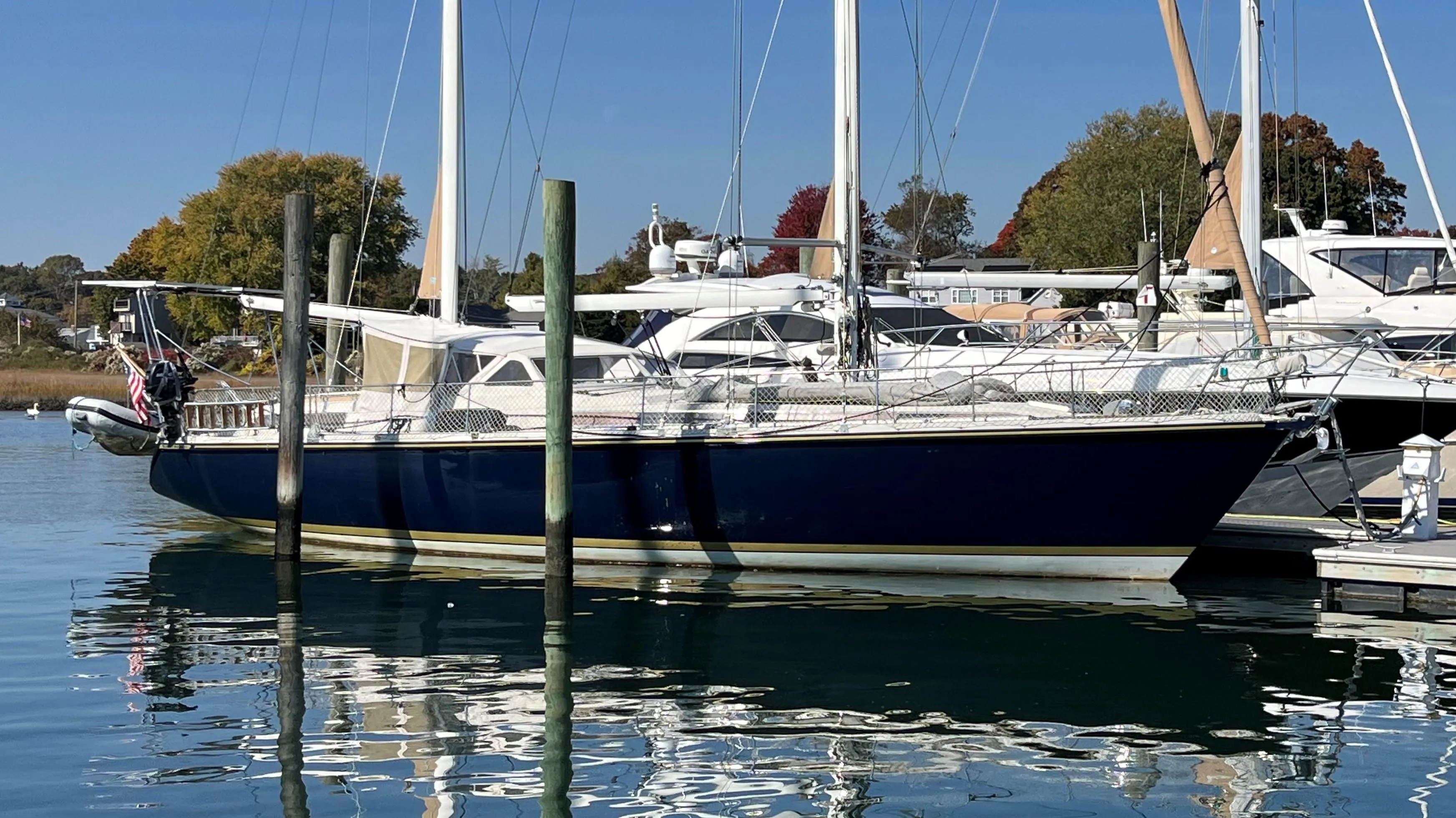 Indigo has had meticulous maintenance and undergone extensive updating in the last 10 years with the current owner. This includes, in just a partial list, a new Yanmar engine, rebuilt generator, new canvas, new refrigerator and freezer, new standing and running rigging, new aft AC system, rebuilt bow thruster, transformers installed to convert to US electric, and stunning new hull paint.