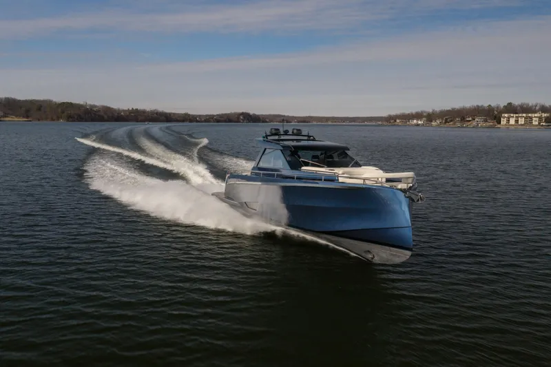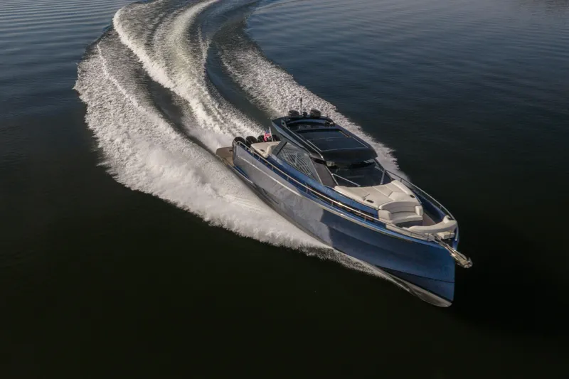 The 2025 DA 53 blends striking European design with American muscle, delivering an unmatched yachting experience. Powered by quad Mercury Verado 600 engines, this 53-footer offers effortless control with Mercury joystick steering, a Seakeeper 6 gyro stabilizer, and Sidepower bow thruster.