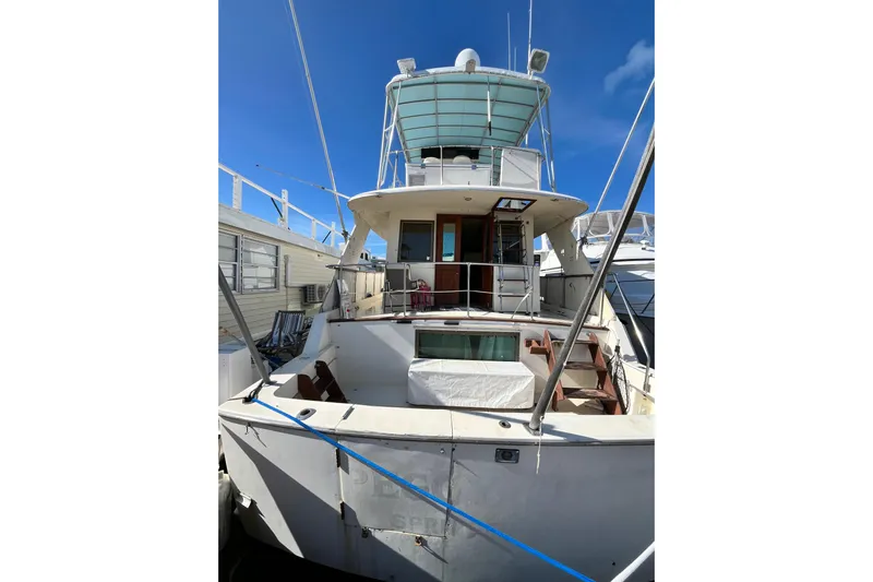 She has very strong bones and is very original. Major bottom job was completed in 2023. The hull paint is original and it's still in nice condition for her age. She also has a flybridge enclosure that is new and has never been installed. This Hatteras has a lot of potential and will make a great home for someone willing to spend the time needed to bring her back to her glory.