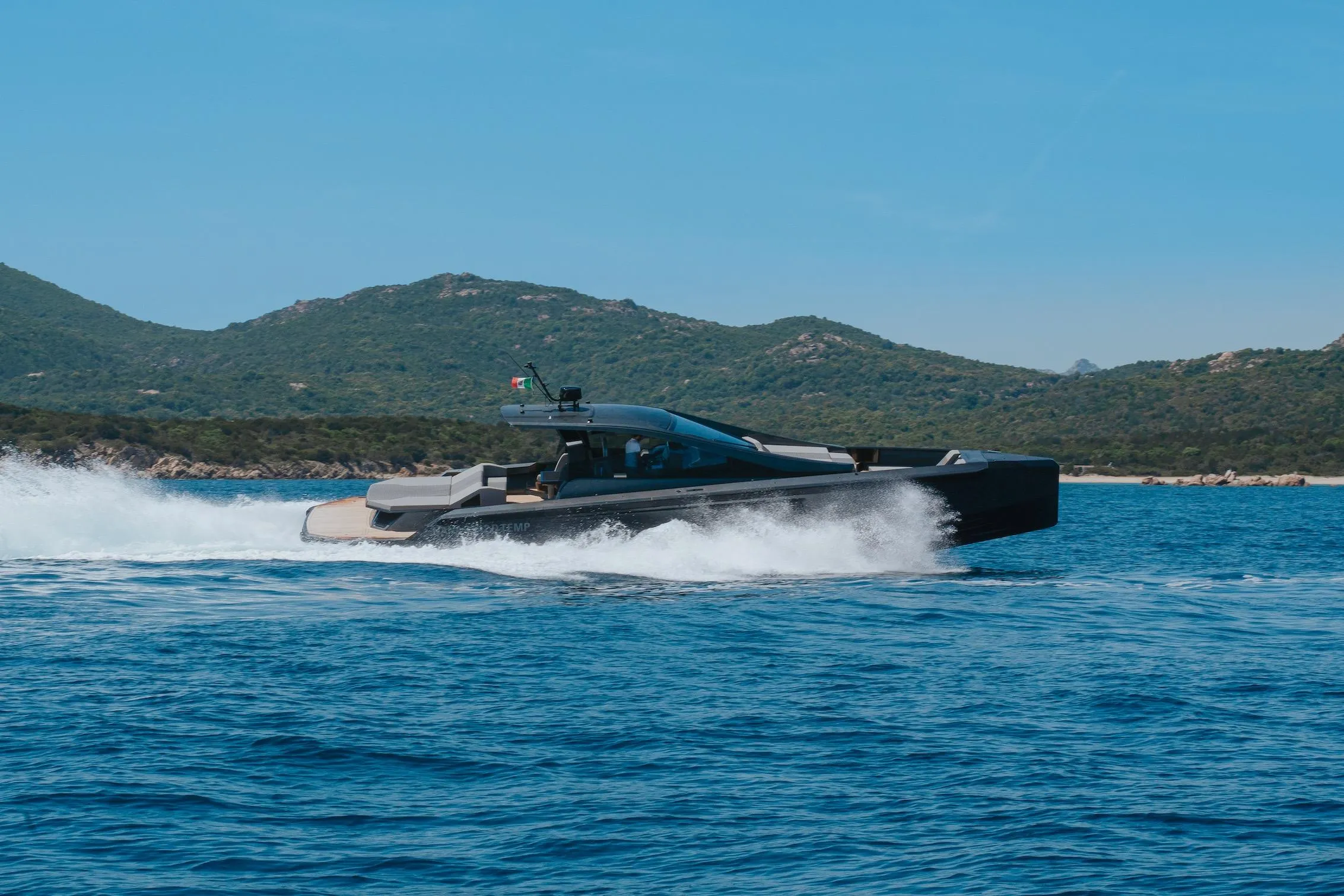 The 54 XL yacht combines unmistakable style with powerful performance, featuring a strong engine and spacious lounging areas. It includes an Opac Mare Transformer for easy boarding and offers three electric guest seats, a foldable function, and a large sunbed. Despite its outdoor focus, it also provides protection with a hardtop awning system and custom interiors that include a galley and bathroom below.