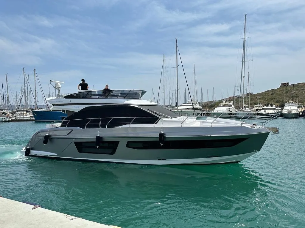 Introducing the stunning 2023 Azimut Fly 53, a remarkable flybridge yacht that combines elegance and performance. With an overall length of 16.89 meters, this vessel is crafted from high-quality fiberglass, ensuring durability and a smooth ride. Powered by two robust Volvo Penta IPS 950 D11 engines, each delivering an impressive 540.63 kW, it achieves a cruising speed of 26 knots and a maximum hull speed of 31 knots, making it perfect for exhilarating adventures on the water. The Azimut Fly 53 offers luxurious accommodation with four well-appointed cabins and three heads, providing ample space for relaxation and comfort. Equipped with an electric windlass, this yacht enhances convenience during anchoring. Experience the perfect blend of style, performance, and comfort aboard the Azimut Fly 53, where every journey becomes a memorable escape.
