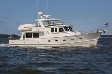 A beautiful 55 Fleming Yacht equipped with twin Cummins QSC 8.3 engines at 500 hp each and a 17kw Onan generator. Features include: fiberglass hardtop with full flybridge enclosure, Furuno NavNet 3D & TZTouch electronics, proportional bow & stern thrusters, a fourth upper docking station at the aft boat deck, Naiad stabilizers, Sea Torque shaft drive system, non-skid Portuguese bridge and foredeck, and a 12’ Walker Bay tender (new 2025). Interior accommodations include three staterooms with two heads: starboard bunk arrangement, VIP guest stateroom to port with two twin-sized berths, and a en-suite master stateroom with a island queen berth to forward. In total this boat has 2 heads, 5 berths, and sleeps 6.