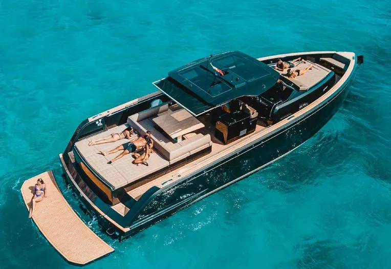 Le design extérieur du Pardo 50 exprime à la fois puissance et raffinement. Le plan de pont walkaround permet une circulation fluide et sécurisée, tandis que les bains de soleil avant et arrière et le grand cockpit convivial offrent une ambiance chic et détendue, idéale pour recevoir famille et amis à bord.