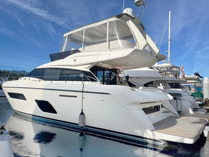 With the rare originality of her hull design, her various interior layouts and the arrangement of her engine rooms, the Ferretti Yachts 550 combines elegance, practicality and seductively beautiful lines. The wraparound glazing on deck slices through her profile for added panache. The three large hull windows blend perfectly into the overall look, bathing the cabins in natural light and opening up superb vistas from inside.
