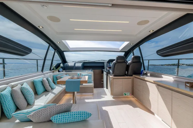 The Filippetti S55 is a yacht defined by light, style and performance. Its interiors are modern and sophisticated, blending fine leather, natural wood, carpeted floors, and lacquered surfaces to create a warm yet contemporary atmosphere.