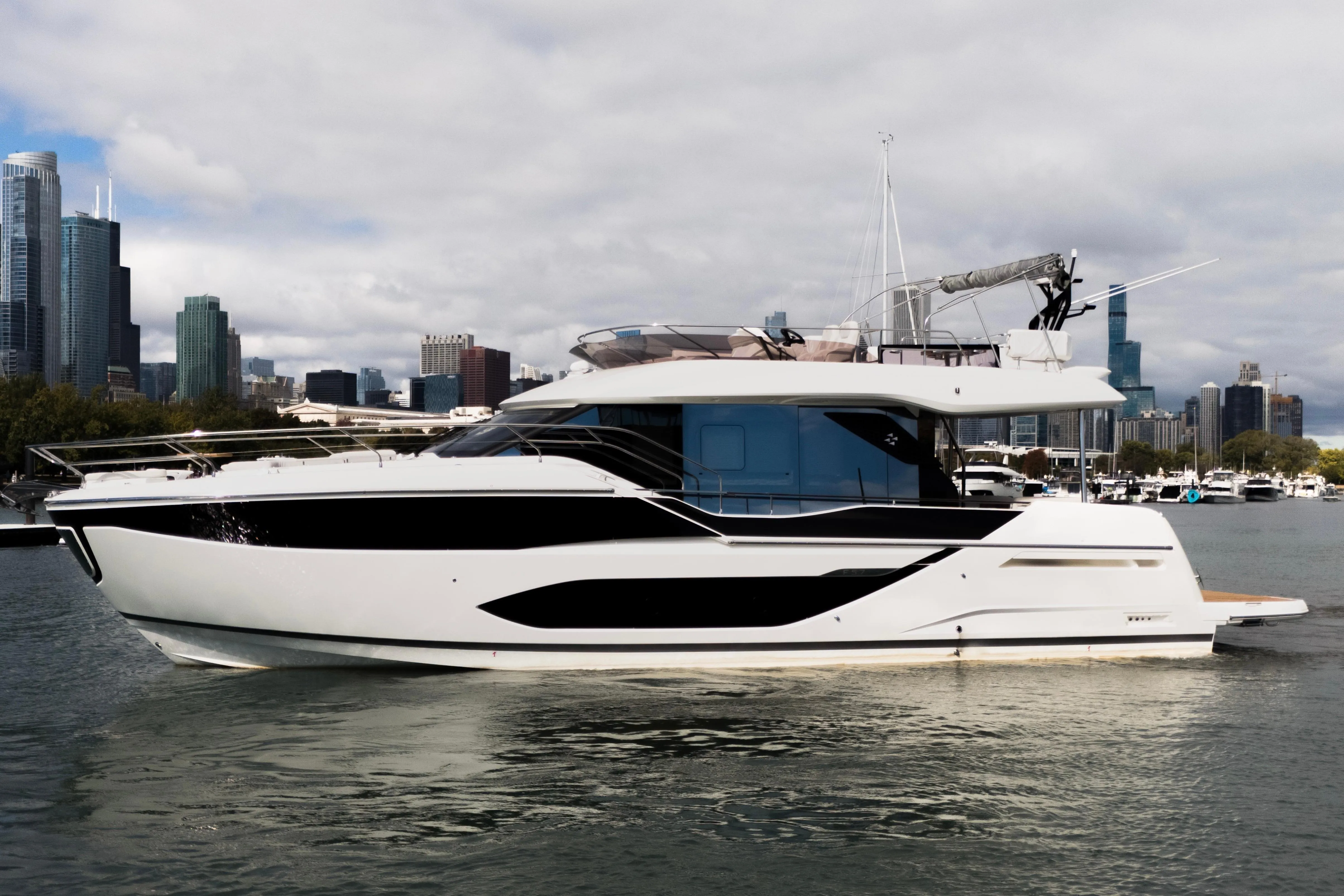 Designed to meet the needs and expectations of luxury yachting connoisseurs, the F5.7 elevates the experience of life on board. Living spaces are arranged to favor moments of sharing and connection, as well as preserving privacy. The gentle curves of her design and her refined fit and finish convey a connection to the sea and to nature, creating a soft, soothing atmosphere. Faithful to the generation of the F-Line, the F5.7 embraces cutting edge technology, offering owners a cruising experience with unequalled ease of handling.