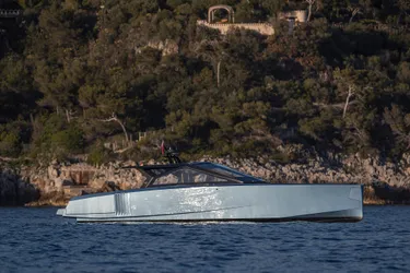 The 2022 Wallypower 58 is a striking sport yacht that seamlessly blends futuristic design, luxury comfort, and thrilling performance. Measuring 17.3 meters in length, it features fold-down bulwarks and a multifunctional hydraulic swim platform that transform the aft area into a spacious, open-air beach club. The carbon fiber and glass superstructure with electric hardtop creates a protected yet airy lounge area, complete with dining space, wet bar, and oversized sunpads.