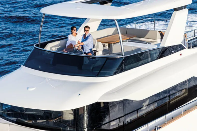 Solidity and harmony, strength and grandeur: all at your fingertips. Welcome aboard the Absolute Navetta 58. This voluminous boat is easily maneuvered in complete autonomy, with cutting-edge technological equipment always at hand, and with reliability of solutions designed entirely within the walls of our shipyard. Outdoors, relaxation is ensured by the sun loungers on the flybridge and in the bow area, reachable with ease and maximum safety. On the upper deck, you find a central helm station, a comfortable bar cabinet, a dining table with two sofas, and a panoramic, protected terrace. The bow area has an enviable sundeck, reachable thanks to wide, side-walkways and ergonomic handrails.