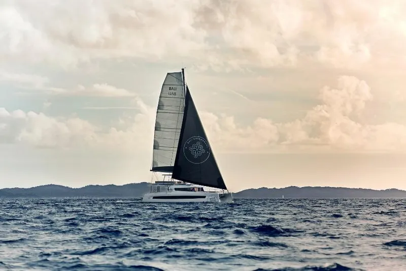 The BALI 5.8 is designed to sail with elegance and efficiency. The optimized sail plan offers up to 240m2 of surface, and its self-steering jib guarantees easy maneuvers, even in strong winds. Made in France, it reflects the expertise and innovation of BALI Catamarans.