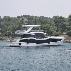 The Galeon 560 FLY is a 2024 luxury motor yacht delivered in perfect condition, featuring only 125 engine hours. Powered by 2× Volvo Penta D13-900 hp engines, it provides excellent performance, efficiency, and reliability. With a length of 17,55 m and a beam of 4,82 m, the yacht offers an exceptionally spacious layout, complemented by Galeon’s signature innovations such as foldable balconies (Beach Mode) and a hydraulic platform ideal for tenders or water toys. Tender is not included.